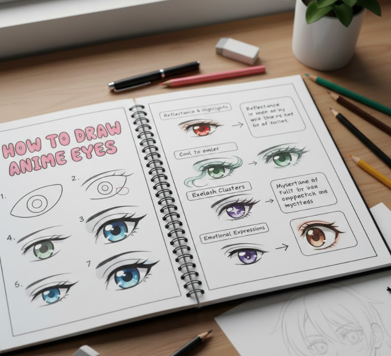 Learning how to draw eyes anime requires understanding stylization rather than anatomy accuracy. Anime eyes exaggerate size, highlights, and emotional clarity while simplifying physical realism.