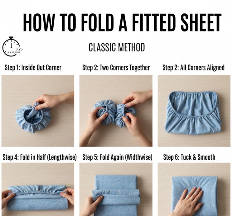 How to Fold a Fitted Sheet Step by Step (Classic Method)