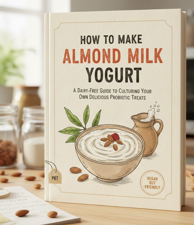 Warm almond milk – Heat the milk to 110°F (43°C) for optimal probiotic activation. Maintaining proper temperature is essential for effective fermentation.